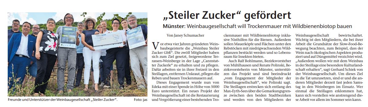 7. August 2019 – „Steiler Zucker“ gefördert – Beitrag in der Canstatter Zeitung