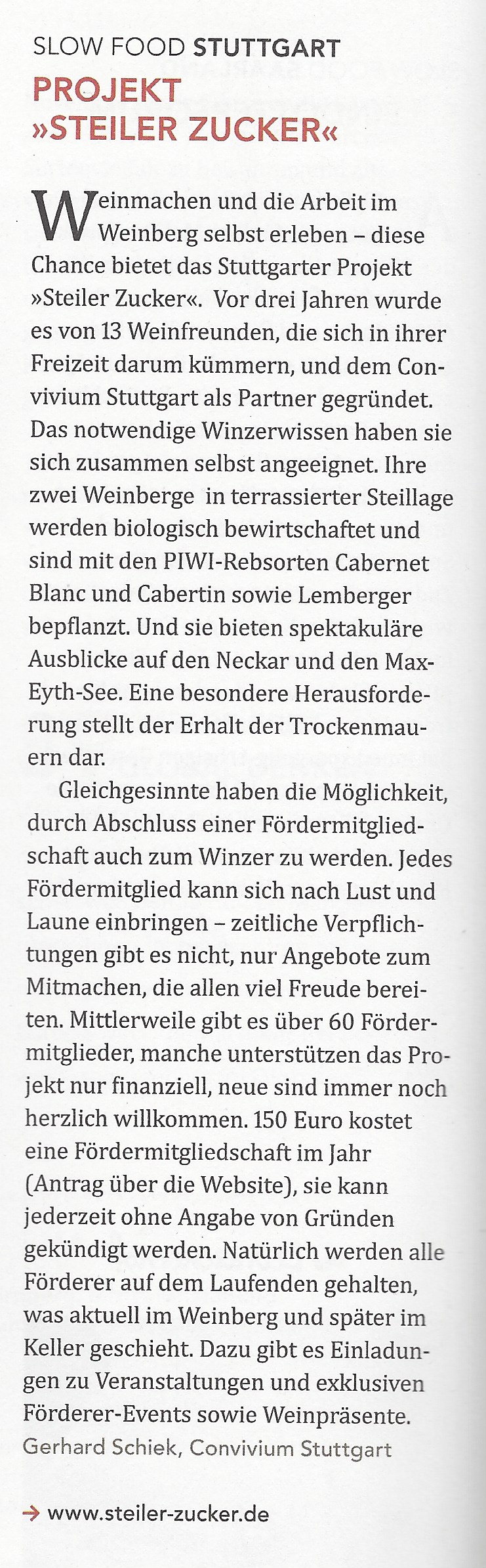 20. Mai 2015 – Weinbergprojekt Steiler Zucker – Slow Food Magazin, Ausgabe 03/2015